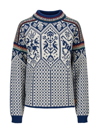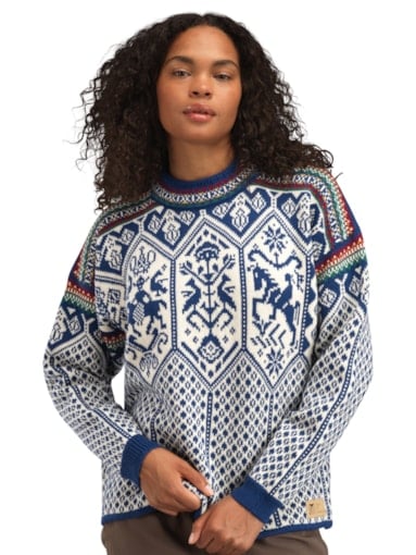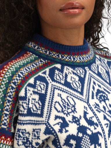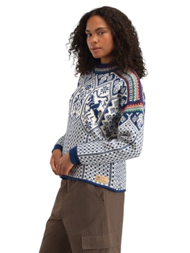 The 1994 Olympic sweater has cemented its place in history as a design icon. For years, enthusiasts scoured vintage stores or picked up their knitting needles to secure a piece. Now, it’s back in our collection, reimagined to appeal to both loyal fans and new generations. The updated 1994 sweater retains the distinctive symbols inspired by Norse mythology but is crafted in a thinner, softer yarn, with an improved fit and refreshed color palette. Knitted at our factory in Dale, Norway, it is made of 100% wool – just like the original. 1994 sweater in natural off white/beige (colorway M00) is made from premium undyed lightweight wool, utilizing the natural colors of the animal fiber. This approach not only highlights the beauty of the wool in its most authentic form but also preserves its natural qualities by eliminating the dyeing process, resulting in a garment that is as natural as it is stylish. - Fit: loose