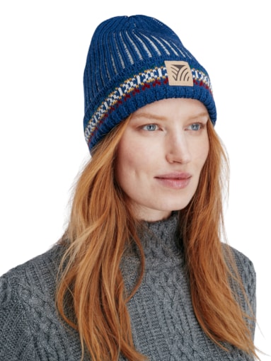 A rib-knit hat with a contrasting two-tone design and a double-knit construction. The detailed border around the fold-up hem is inspired by our greatest success ever: our original 1994 Lillehammer Olympic sweater.