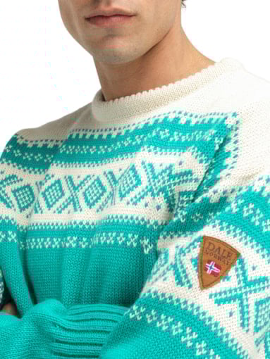 • The Original! Dale of Norway's first official Olympic sweater, originally designed for the 1956 Winter Olympics in Cortina d'Ampezzo, by Bitten Eriksen for Dale of Norway. This iconic pattern, rooted in traditional Norwegian heritage, has become one of Norway’s most beloved designs. Crafted from 100% Norwegian wool for unmatched quality and authenticity.