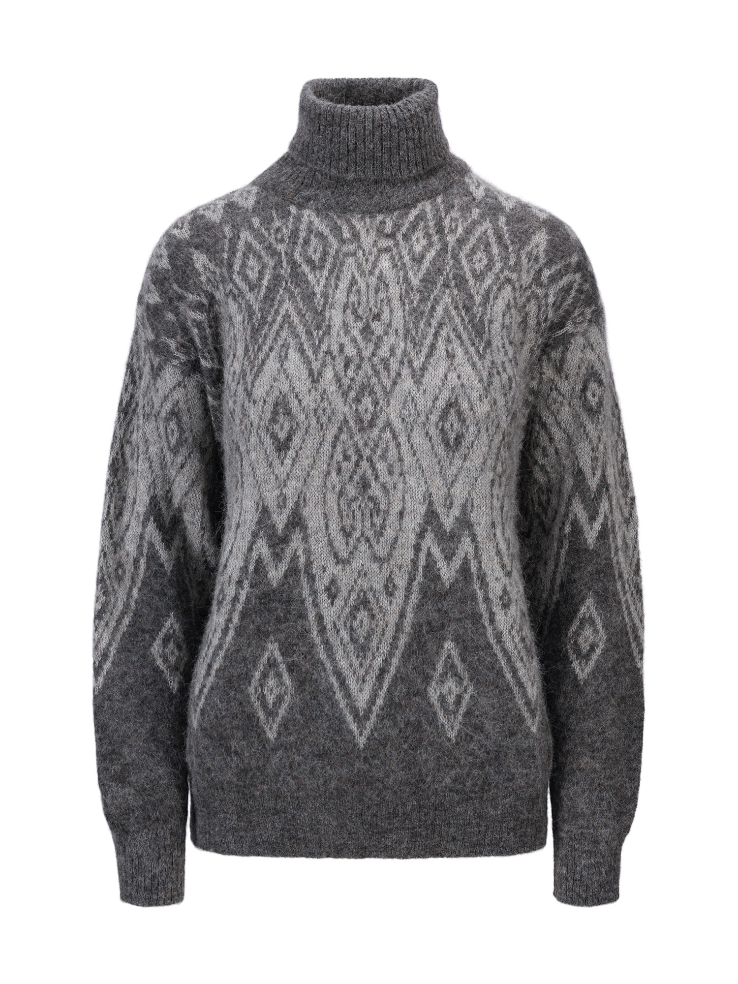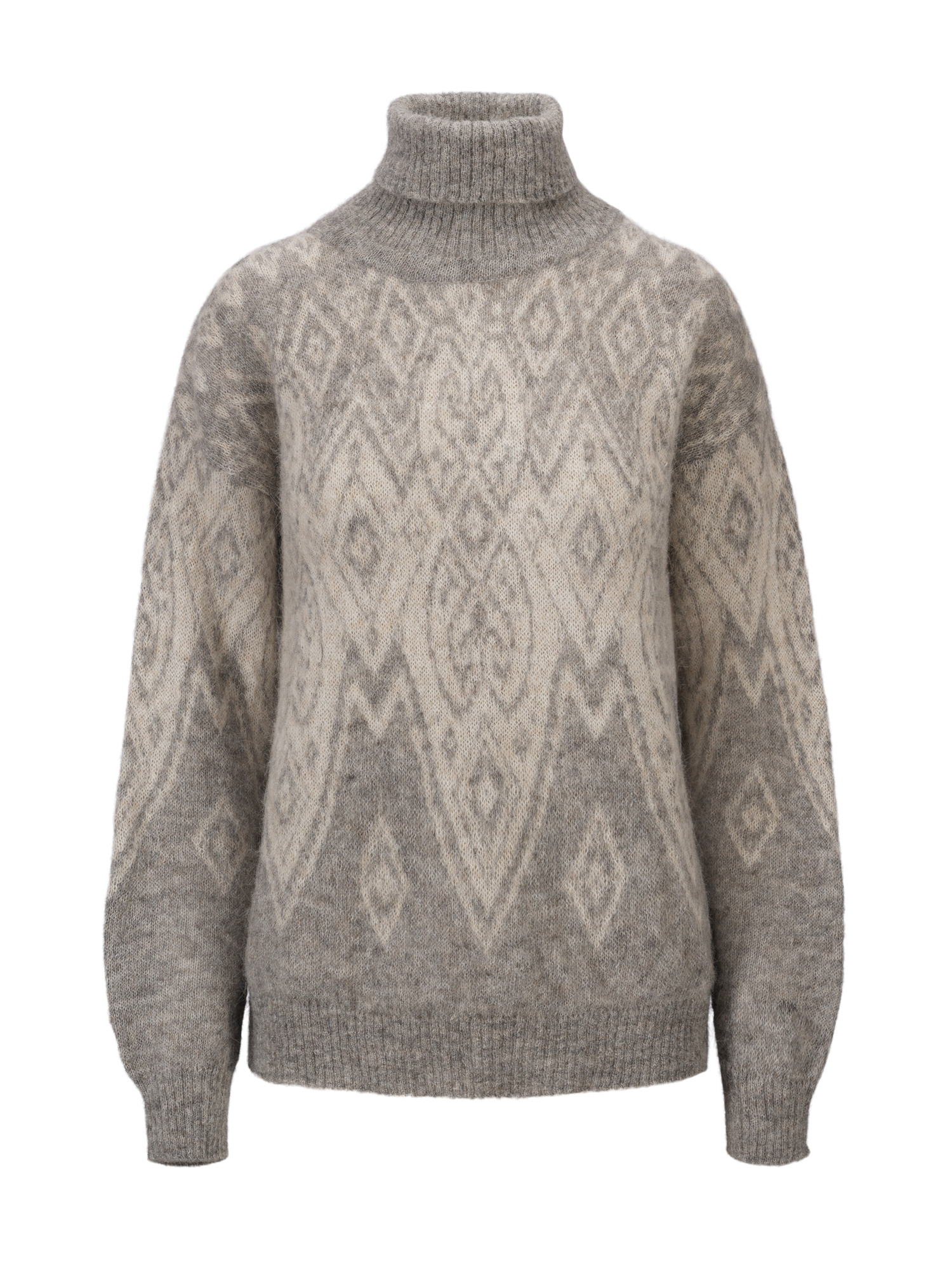 Experience the ultimate blend of heritage and modern luxury with the Falun Alpa sweater. This high-neck sweater with rib finishes gets its additional name "Alpa" from the exquisite alpaca yarn used in its construction. Crafted with brushed alpaca yarn that is naturally undyed, the sweater highlights the natural tones of Peruvian alpaca fleece. Alpaca is a smooth fiber that can easily separate. In this yarn, the fibers are held together by recycled polyester, sourced from post-consumer plastic bottles.