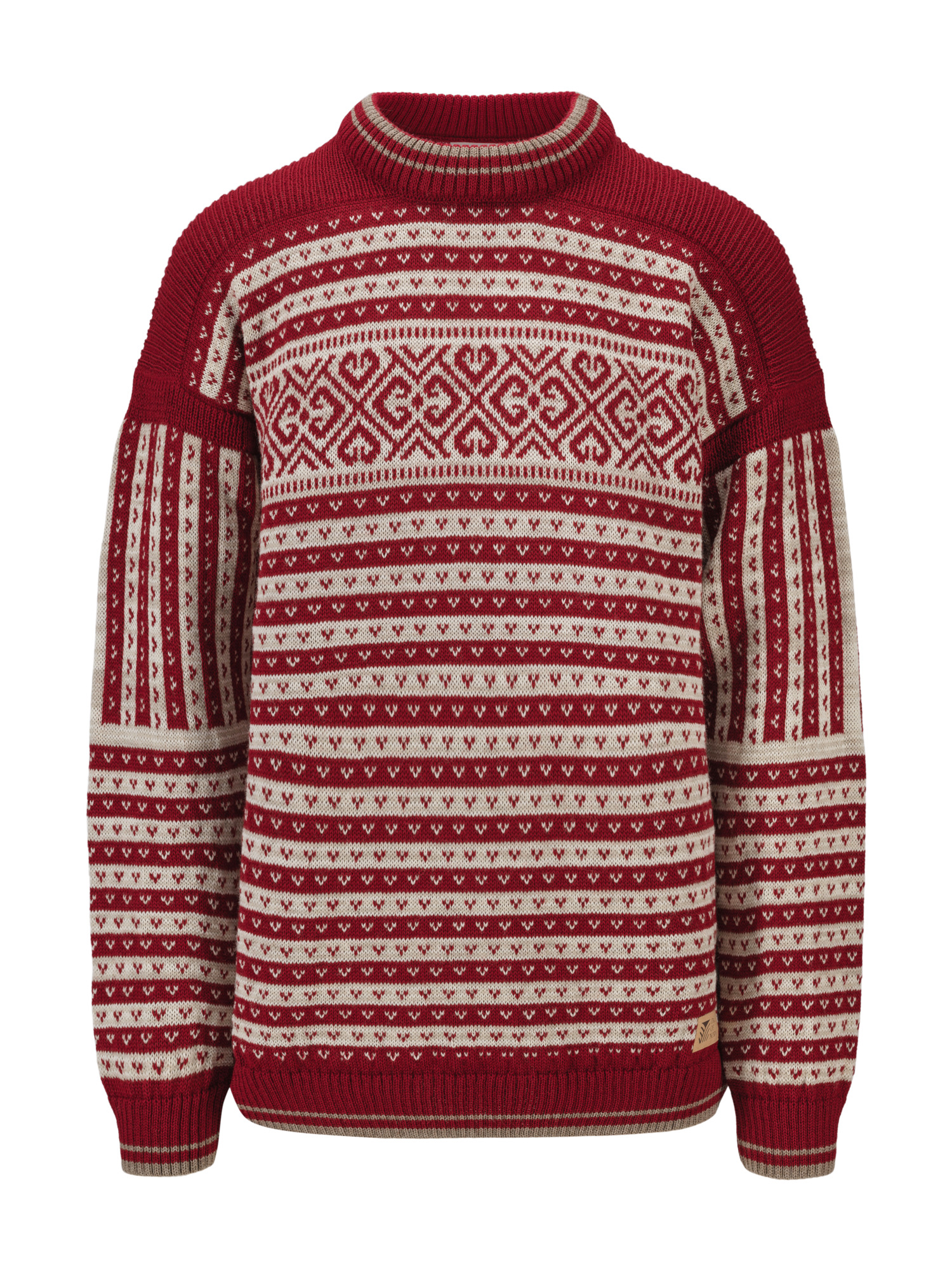 The Ramberg sweater brings a unique urban flair to a timeless design. With a relaxed fit, ribbed shoulder details highlighting the drop shoulder, and striking contrast stripes at the neck, sleeves, and bottom hem, Ramberg effortlessly merges classic and contemporary. Inspired by the historic Fana sweater, Ramberg reimagines this heritage piece for today. The classic stripes are updated with a rounded eight-petal-rose design around the chest and a traditional lice pattern, while shoulder accents and stripe rib finishes add a fresh, dynamic touch. Multiple yarn colors blend in the thread mix, giving the Ramberg a vibrant, urban character.