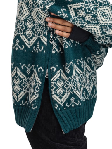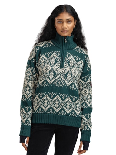 Adventure confidently with the Roset Windproof quarter-zip sweater. Featuring a fully windproof lined design, side seam zippers for ventilation, and hidden front pockets, it’s a versatile choice for changing weather. The relaxed fit, complete with cuffs with thumb holes, makes it perfect for layering over another sweater. Inspired by our iconic 2003 St. Moritz World Ski Championship sweater, the Roset is re-imagined in lightweight Norwegian wool, providing natural insulation and windproof comfort. The modern silhouette blends reworked traditional patterns with exceptional functionality, ideal for sport, outdoor, hiking, and ski lifestyles. Embrace warmth, comfort, and timeless style in the great outdoors. - XS – XL