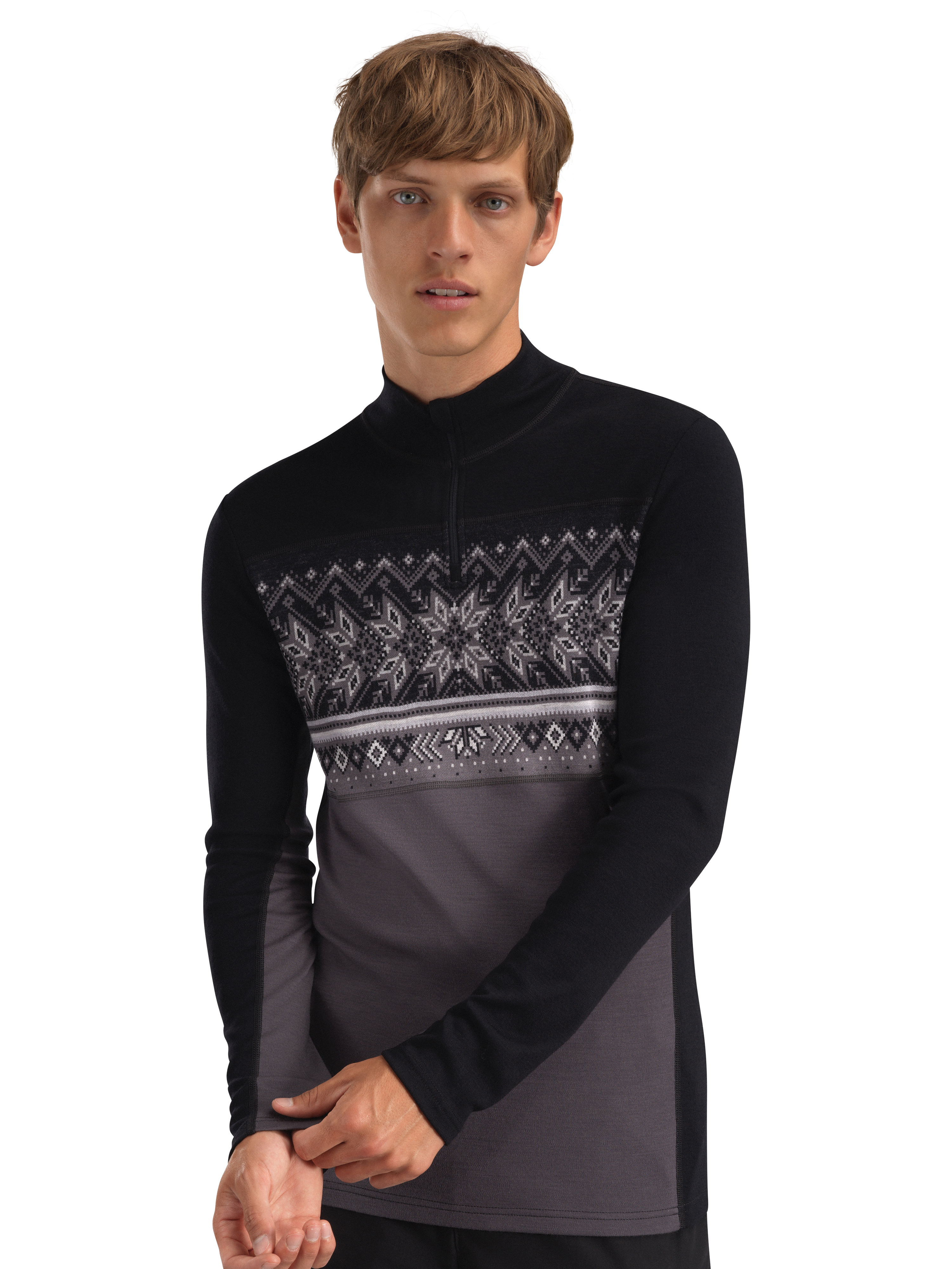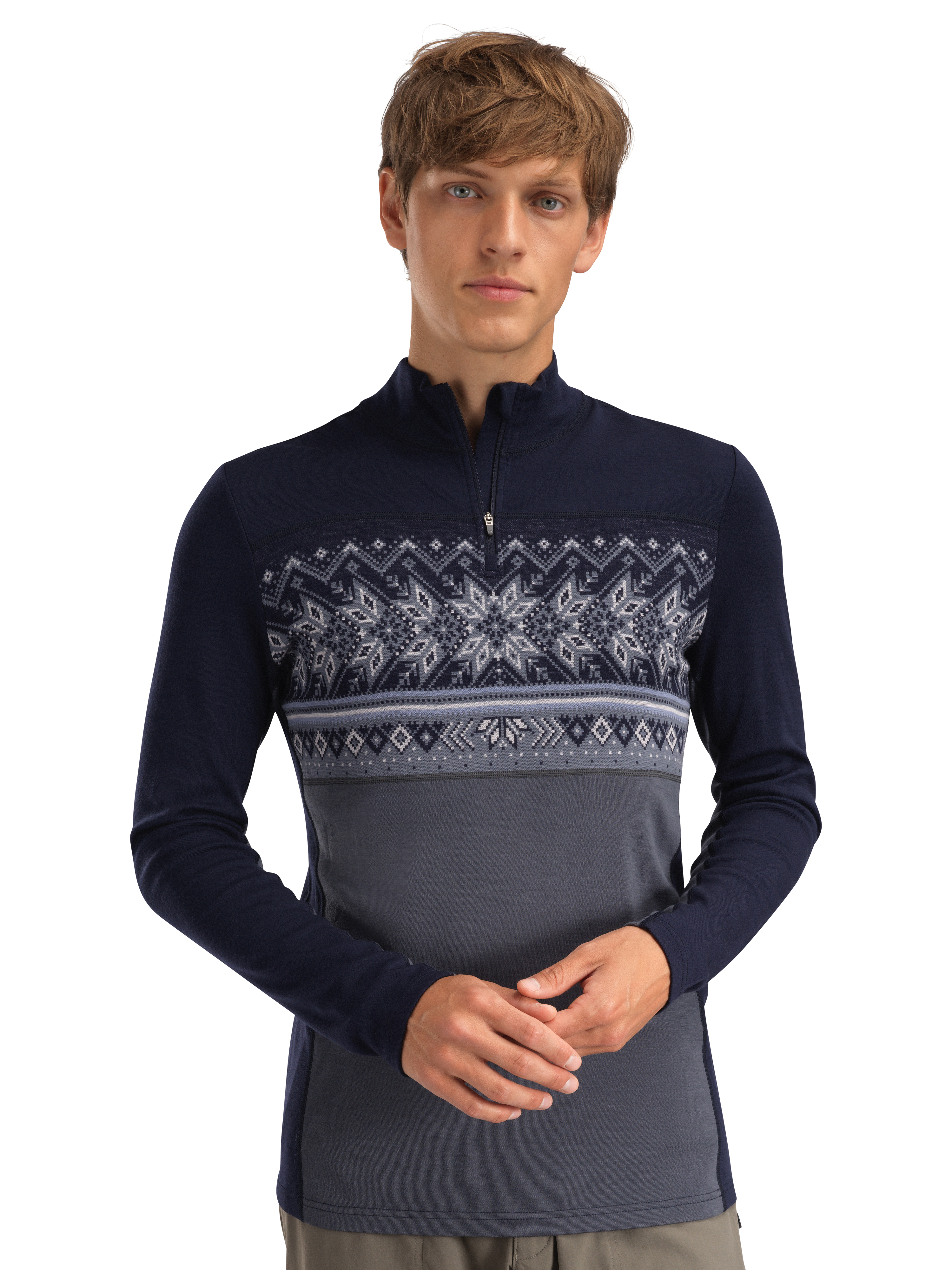 A sporty base layer wool sweater in soft merino wool. The sweater has a semi-high neck with a zipper. Flat seams prevent friction against the skin when moving. The side seams have been shaped towards the front the sweater for maximum comfort during activity. The underarm panel is knitted in a contrast color. Vail can be used as a base layer on both cold and hot days. It can also be worn as a thin next-to-skin sweater. Pair with Aksla base layer pants for a complete look. Responsible Wool Standard certification (RWS) ensures that the wool in this garment is responsibly produced. The certification has requirements for animal welfare (including a ban on mulesing), working conditions, and that production safeguards biodiversity and sustainable operation of the soil.