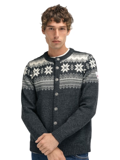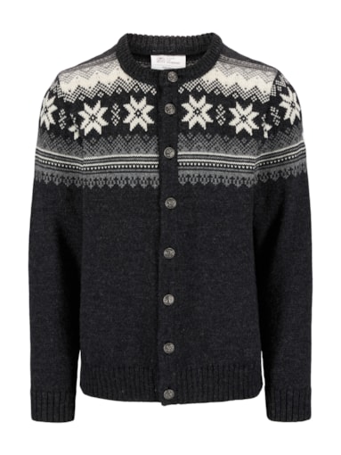 • A classic, retro wool jacket with detailed patterns reminiscing back to the 1950s and 60s. The jacket has a front button closure with Norwegian-made pewter buttons. The Veafjord is knitted in 100% long-lasting Norwegian wool, making the wool jacket extra warm and durable.